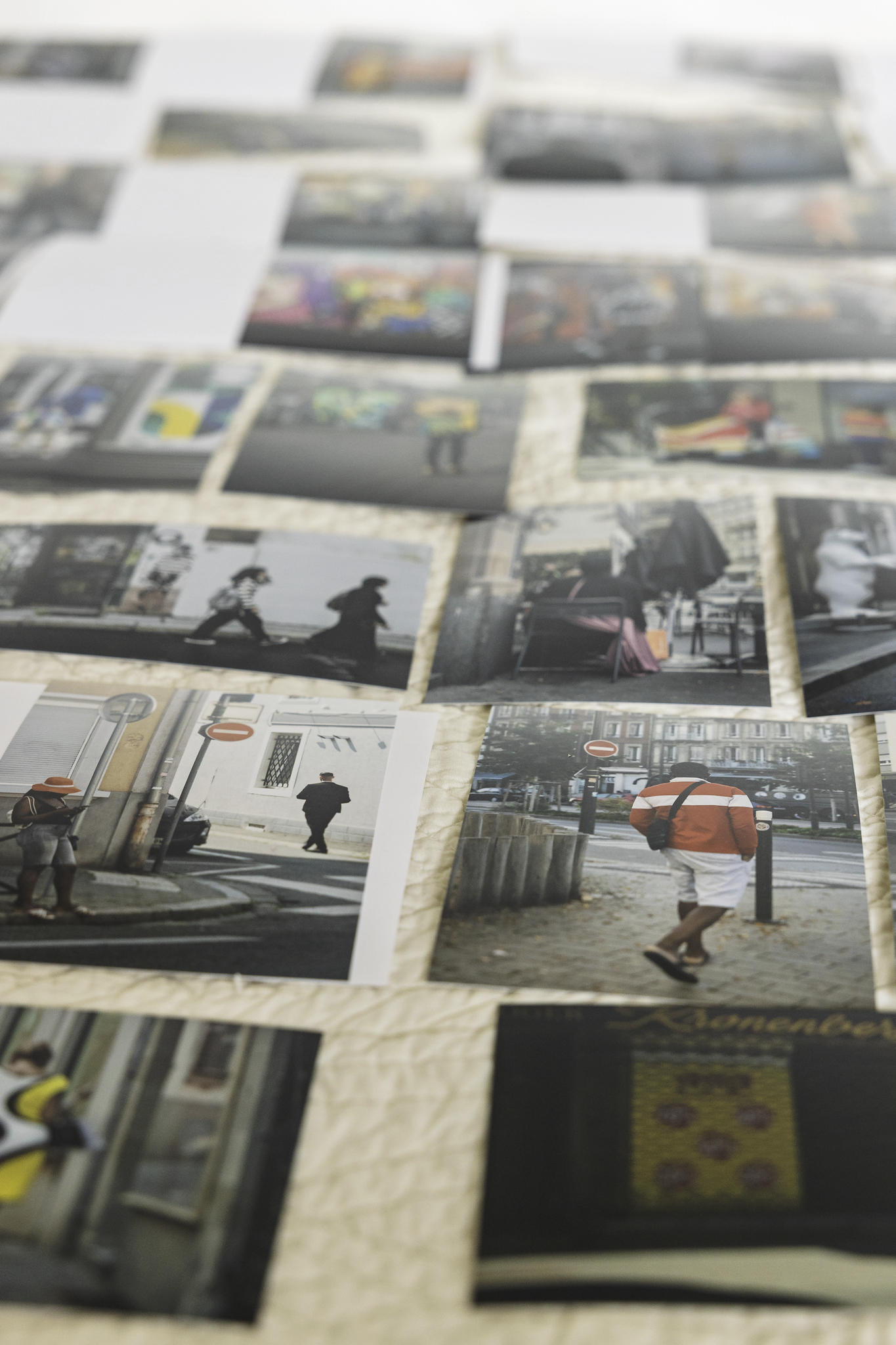 Pour mon projet SynchroniCITÉ, j’ai sélectionné environ 500 photos qui me semblaient être en cohérence avec la thématique. J’ai ensuite procédé à un premier tri pour n’en retenir que 200, que j’ai imprimées en petit format (10 x 15 cm).